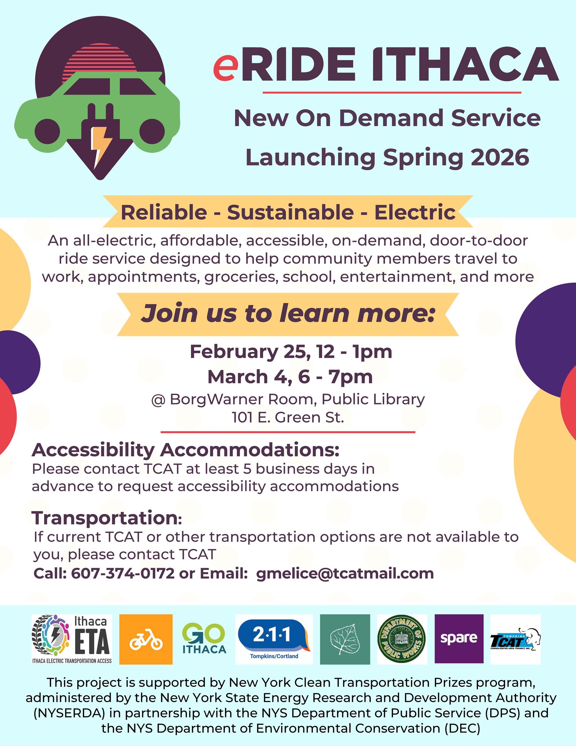 TCAT plans to launch an on-demand, affordable electric car and van service this spring to reduce transportation barriers that have long caused hardships for many living in Ithaca’s West Hill, West End, and Flats areas.
